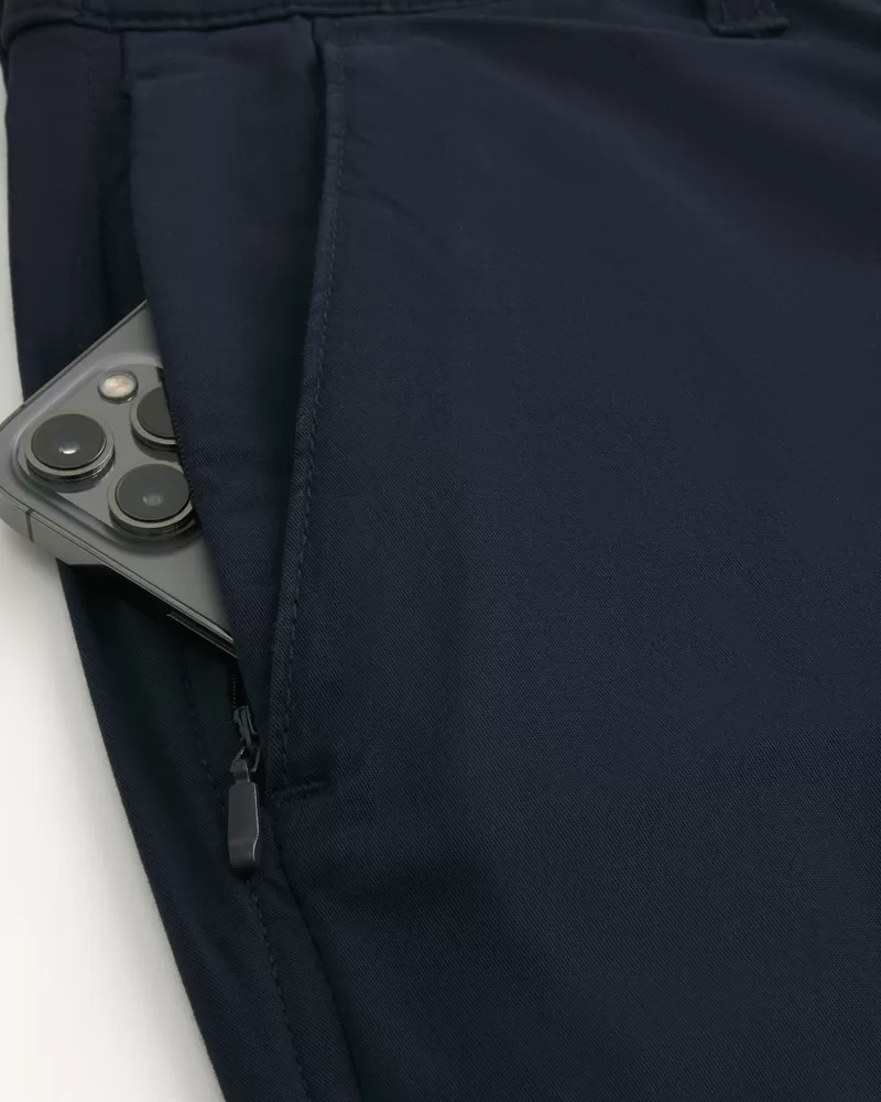 Ultra-comfortable twill chino pants with stretch, designed with a slim leg from top to bottom. Pockets, right zipper pocket.
