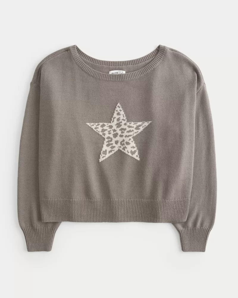 Easy Off-the-Shoulder Star Graphic Sweater