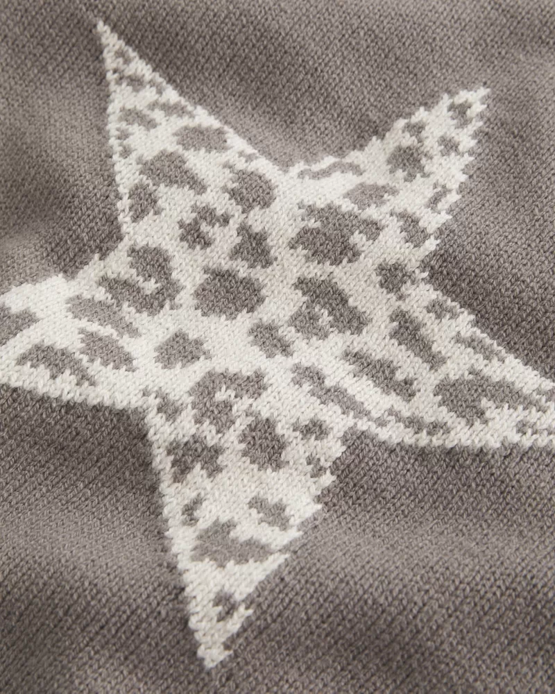A cozy and super soft sweater with a slouchy neckline that can be worn off one shoulder. Star intarsia graphic, ribbed trims, long sleeves. Easy Fit. Imported.