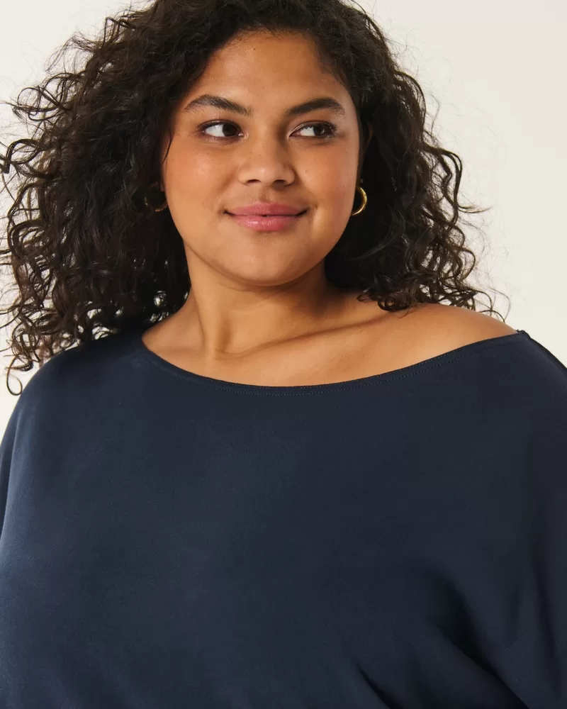 A super soft sweatshirt in terry fleece fabric, featuring an off-the-shoulder neckline and long sleeves. Easy Fit.