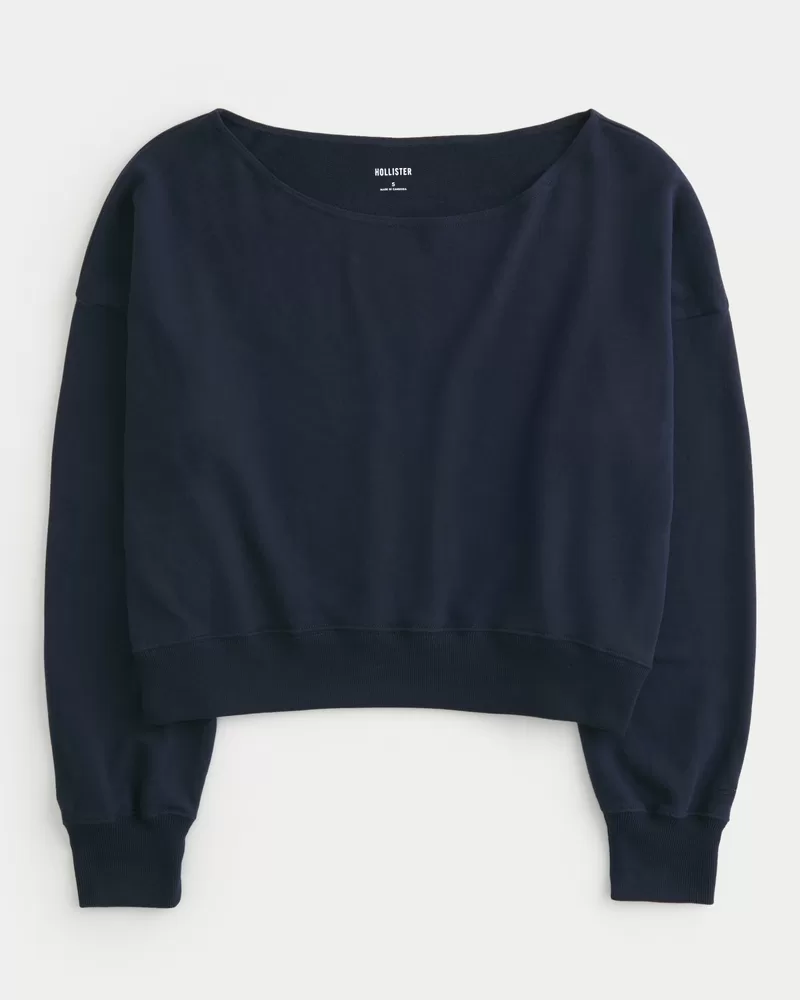 A super soft sweatshirt in terry fleece fabric, featuring an off-the-shoulder neckline and long sleeves. Easy Fit. Imported.